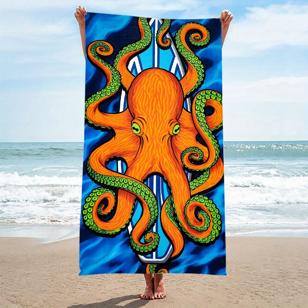 1pc Orange Octopus Microfiber Beach Towel – Oversized Super Absorbent Towel for Travel, Pool, Surfing & Camping