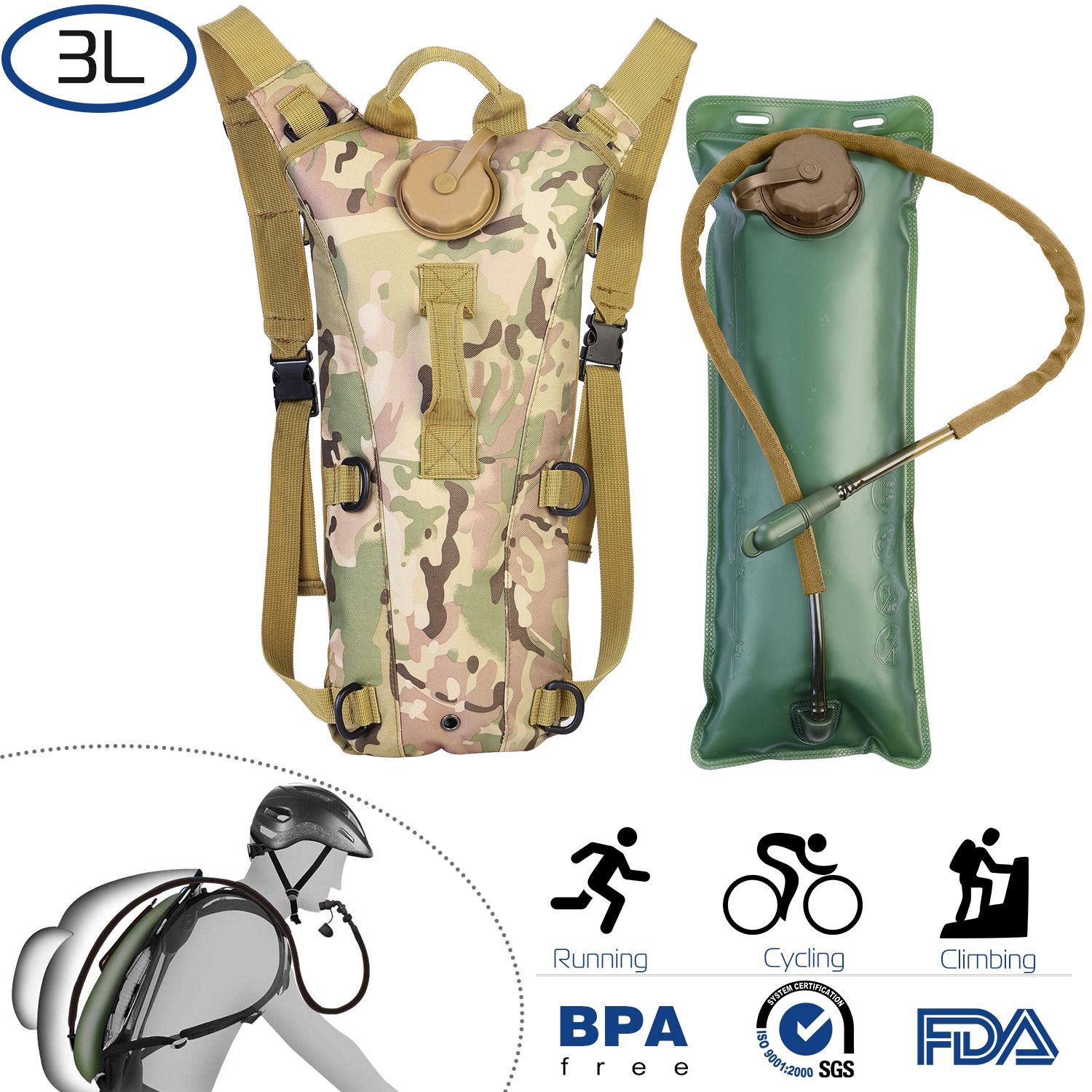 • Water Bladder Capacity: 3L